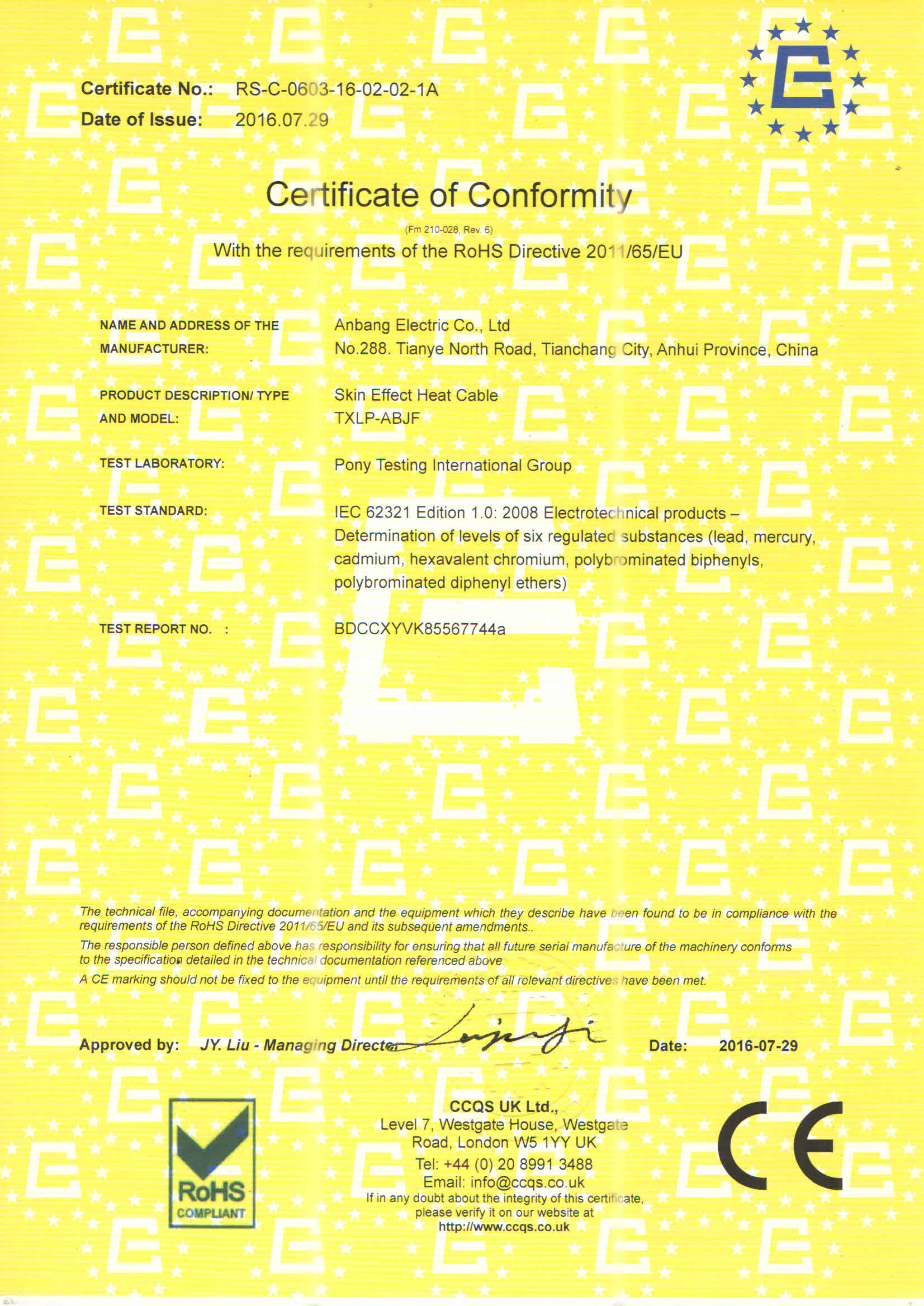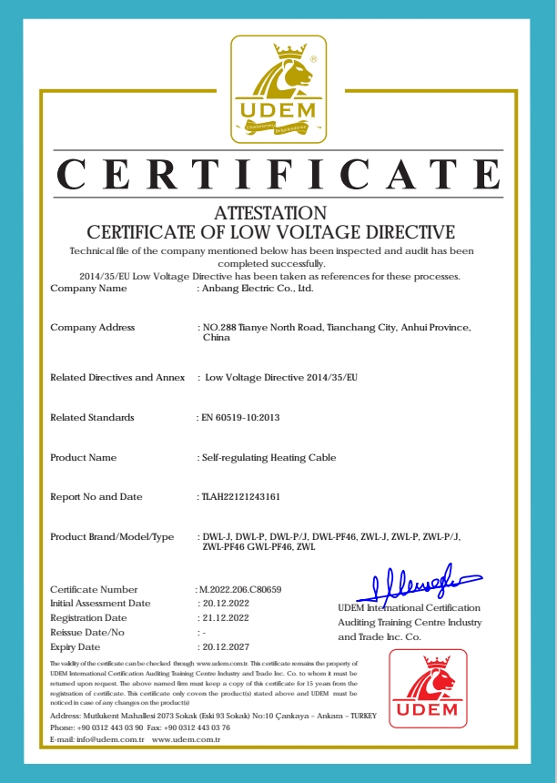 安邦電氣股份有限公司,總部位于北京市長安街,成立于2004年,注冊資金10088萬。安徽生產(chǎn)基地占地面積63000平方米,擁有66套各類生產(chǎn)線,其中進口生產(chǎn)線6套。國家高新技術(shù)型企業(yè),滁州市市長質(zhì)量獎企業(yè),專精特新“小巨人”企業(yè),擁有國家知識產(chǎn)權(quán)局授權(quán)的45項專利,其中發(fā)明專利28項 , 主筆《太陽能熱利用自限溫電熱帶安裝規(guī)范》行業(yè)標準,參編《自限溫電伴熱帶》國家標準、《工業(yè)和商業(yè)用電阻式伴熱系統(tǒng)》國家標準、《太陽能熱利用自限溫電熱帶》行業(yè)標準、《爆炸性環(huán)境 電阻式伴熱器》國家標準等7項國家標準。企業(yè)通過UL認證,國家強制性 CCC產(chǎn)品認證,ISO9001質(zhì)量管理體系認證,ISO14001環(huán)境管理體系認證,ISO45001職業(yè)健康安全管理體系認證,Q/SHS0001.1健康、安全與環(huán)境管理體系認證,歐盟防爆ATEX認證,歐盟CE認證,RoHS認證,俄羅斯海關(guān)聯(lián)盟認證,國家防爆電氣CCC證書。產(chǎn)品系列:集膚伴熱系統(tǒng)、電伴熱系統(tǒng)、電加熱器、電地暖系統(tǒng)、集儀器儀表、電線電纜、高低壓配電柜(箱)、電纜橋架、閥門管件等等設(shè)計、制造、銷售。產(chǎn)品應(yīng)用于航天航空、軍工、石油、石化、天然氣、機場、化工、鋼鐵、隧道、消防、養(yǎng)殖、融雪化冰、室內(nèi)供暖、國家電網(wǎng)及眾多電廠等等國家重點工程。出口美國、英國、德國、俄羅斯、韓國、日本、哈薩克斯坦、烏克蘭、伊朗等眾多國家。